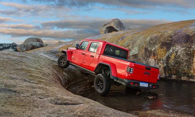 Essa aí nas fotos é a nova picape Jeep Gladiator Rubicon (nas fotos), que acaba de ser lançada aqui no Brasil. Importada dos EUA, ela custa quase meio milhão de reais – ou, para ser preciso, R$ 499.990,00* Com perfil gritantemente aventureiro, ela vem equipada com motor de 3.6 livros V6 (de seis cilindros em “v”), a gasolina, capaz de gerar 284cv de potência e 35,3 kgfm de torque, que funciona em conjunto com um a um câmbio automático de oito marchas e, claro, tem um sofisticado sistema de tração nas quatro rodas.