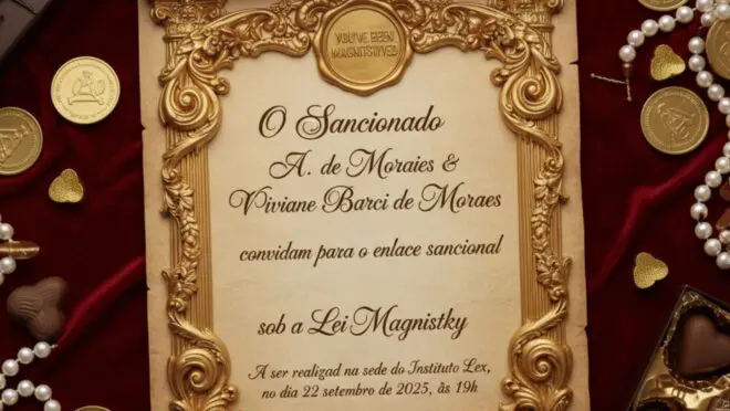 À saída da recepção, era possível ver os presentes que o casal Sancionado & Sancionada receberam. Lula, por exemplo, presenteou Alexandre de Moraes com um relógio caríssimo. Já Davi Alcolumbre, presidente do Senado, presenteou o casal com um Passe Livre para Mais Arbitrariedades Supremas. Gilmar Mendes, por sua vez, presenteou Alê e Vivi com uma escandalosa “solidariedade irrestrita”.