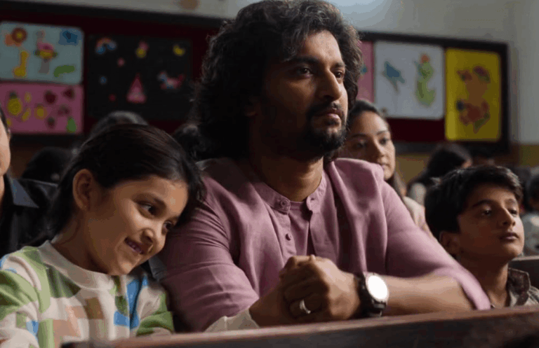 Ao final da sessão de fotos, Viraj vai pegar a filhinha na escola. A garotinha Mahi (o papel de Kiara Khanna) tem 6 anos de idade, é lindinha e fofíssima – e veremos que é uma das três personagens centrais do filme.